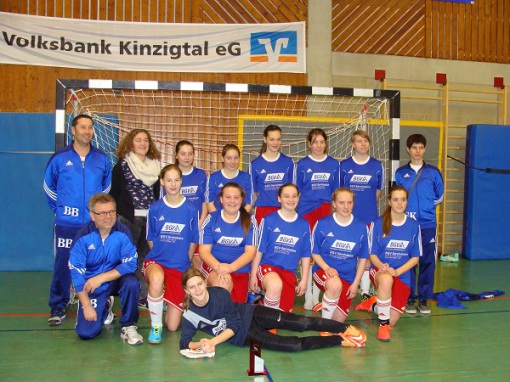 Mit 4 Siegen, 1 Niederlage und 12-1 Toren belegten die B-Mädels den zweiten Platz bei den Hallenbezirksmeisterschaften. In Vorrunde und Finale 8 Siege in 9 Spielen können sich sehen lassen! Sieger wurden die Mädels vom Oberligisten SC Sand mit unseren beiden ehemaligen Spielerinnen Miriam Hertenstein u. Jule Baum. |